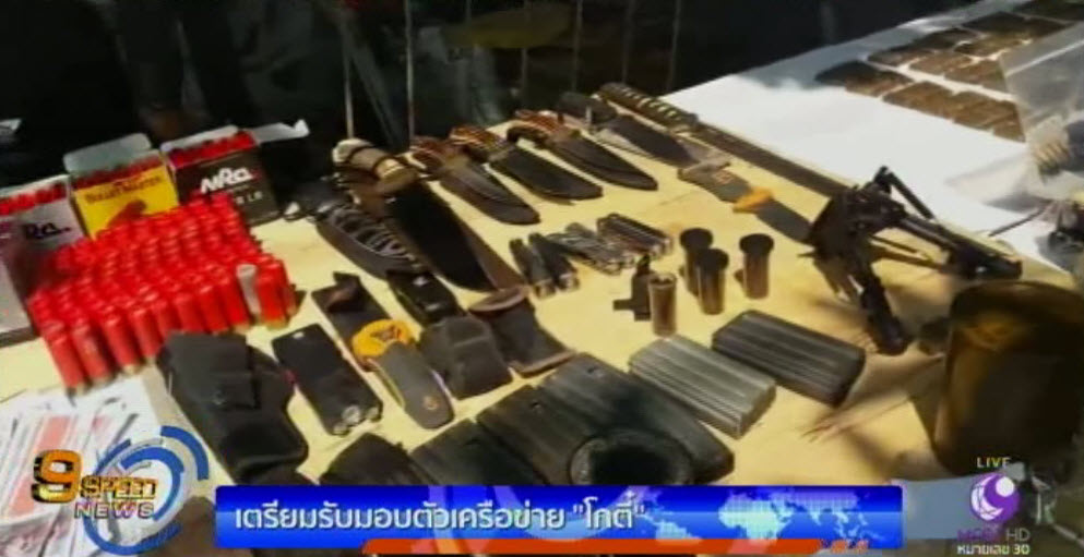 24 มี.ค. – วันนี้เวลา 10.00 น. ทหารจะควบคุมตัว 9 ผู้ต้องหา เครือข่ายนายวุฒิพงศ์ กชธรรมคุณ หรือ โกตี๋ ที่ถูกจับกุมพร้อมการตรวจยึดอาวุธสงครามจำนวนมากภายในบริษัทแห่งหนึ่งที่ จ.ปทุมธานี เมื่อวันที่ 18 มีนาคมที่ผ่านมา มาให้พนักงานสอบสวนกองปราบปรามดำเนินคดี โดยกองปราบได้เตรียมเจ้าหน้าที่รับมอบตัว โดยจะตรวจสอบร่างกาย สอบปากคำ ก่อนแจ้งข้อกล่าวหาตามความผิด เช่น ครอบครองอาวุธสงคราม และเครื่องกระสุนที่นายทะเบียนไม่สามารถออกให้ได้ มีวัตถุระเบิดไว้ในครอบครอง ซึ่งแต่ละคนจะมีข้อหาไม่เหมือนกัน จากนั้นทั้ง 9 คน จะถูกนำตัวไปขออำนาจศาลอาญา รัชดา ฝากขังทันที. – สำนักข่าวไทย