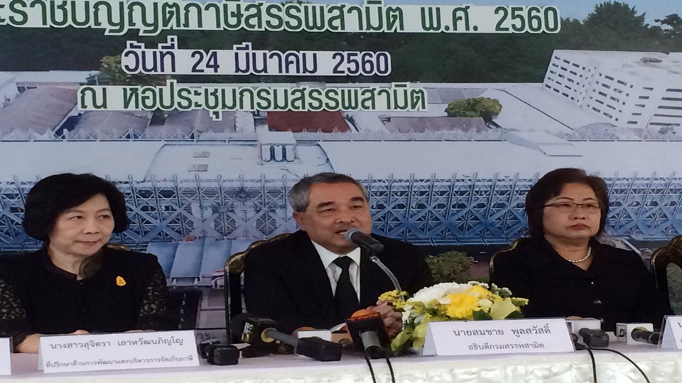 นายสมชาย พูลสวัสดิ์ อธิบดีกรมสรรพสามิต เปิดเผยว่า กรมสรรพสามิตปฏิรูปโครงสร้างภาษีสรรพสามิต โดยมีการจัดเก็บภาษีแบบใหม่ เพื่อให้สอดคล้องกับสภาพเศรษฐกิจในปัจจุบัน ซึ่งกฎหมายดังกล่าวประกาศลงในราชกิจจานุเบกษาแล้วเมื่อวันที่ 20 มีนาคมที่ผ่านมา และคาดว่าจะมีผลบังคับใช้เมื่อพ้น 180 วัน หรือประมาณวันที่ 16 กันยายน 2560 โดยยืนยันว่าการปฏิรูปภาษีใหม่นั้น จะมีการกำหนดอัตราภาษีจริงไว้ในกฎหมายลูก เนื่องจากเพดานกำหนดไว้มีอัตราสูงและการจัดเก็บภาษีจะไม่ให้กระทบกับผู้บริโภคแน่นอน