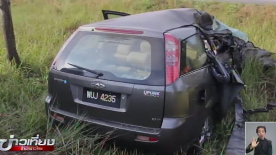 เจ้าหน้าที่เข้าตรวจสอบสภาพรถยนต์ทะเบียน WUJ 4235 มาเลเซีย หลังเสียหลักชนต้นไม้ในคูน้ำกลางถนนสายเอเชียฝั่งขาเข้า อำเภอหาดใหญ่ ตำบลท่าช้าง อำเภอบางกล่ำ จังหวัดสงขลา โดยรถด้านหน้าเสียหายยุบเข้าไปครึ่งคัน ภายในรถพบศพหญิงชาวมุสลิมซึ่งเป็นคนขับและมีผู้บาดเจ็บสาหัส 1 คน คือนางฟาตีมะ บินตีฮูเซ็น เจ้าหน้าที่ประสานนำส่งโรงพยาบาล เบื้องต้นสันนิษฐานว่าคนขับอาจไม่ชำนาญเส้นทาง และขับมาด้วยความเร็วจึงเสียหลัก สำหรับรถยนต์นี้ ผู้ครอบครองเป็นชาวมาเลเซีย เจ้าหน้าที่จะเร่งตรวจสอบว่าเป็นคนเดียวกับผู้เสียชีวิตหรือไม่