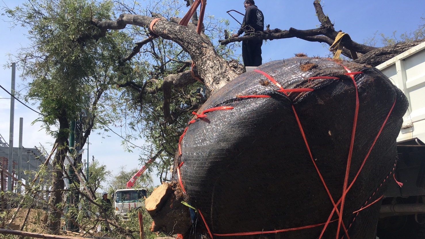 ซึ่งเป็นการขนย้ายออกจากพื้นที่ครั้งแรก หลังจากทีมรุกขกรได้ลงพื้นที่ดำเนินการขุดล้อมต้นมะขามทั้ง