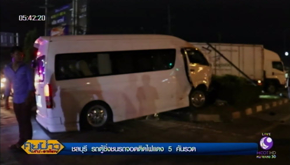 ชลบุรี 23 มี.ค. – หนุ่มวัย 20 ปี ซิ่งรถตู้ชนรถ 5 คันรวด ขณะจอดติดไฟแดงแยกนิคมสยามอีสเทริน์ บนถนนสาย 331 (สัตหีบ-ฉะเชิงเทรา) ขาเข้าสัตหีบ ต.บ่อวิน อ.ศรีราชา จ.ชลบุรี คนขับมีอาการคล้ายคนเมา มีผู้บาดเจ็บหลายคน