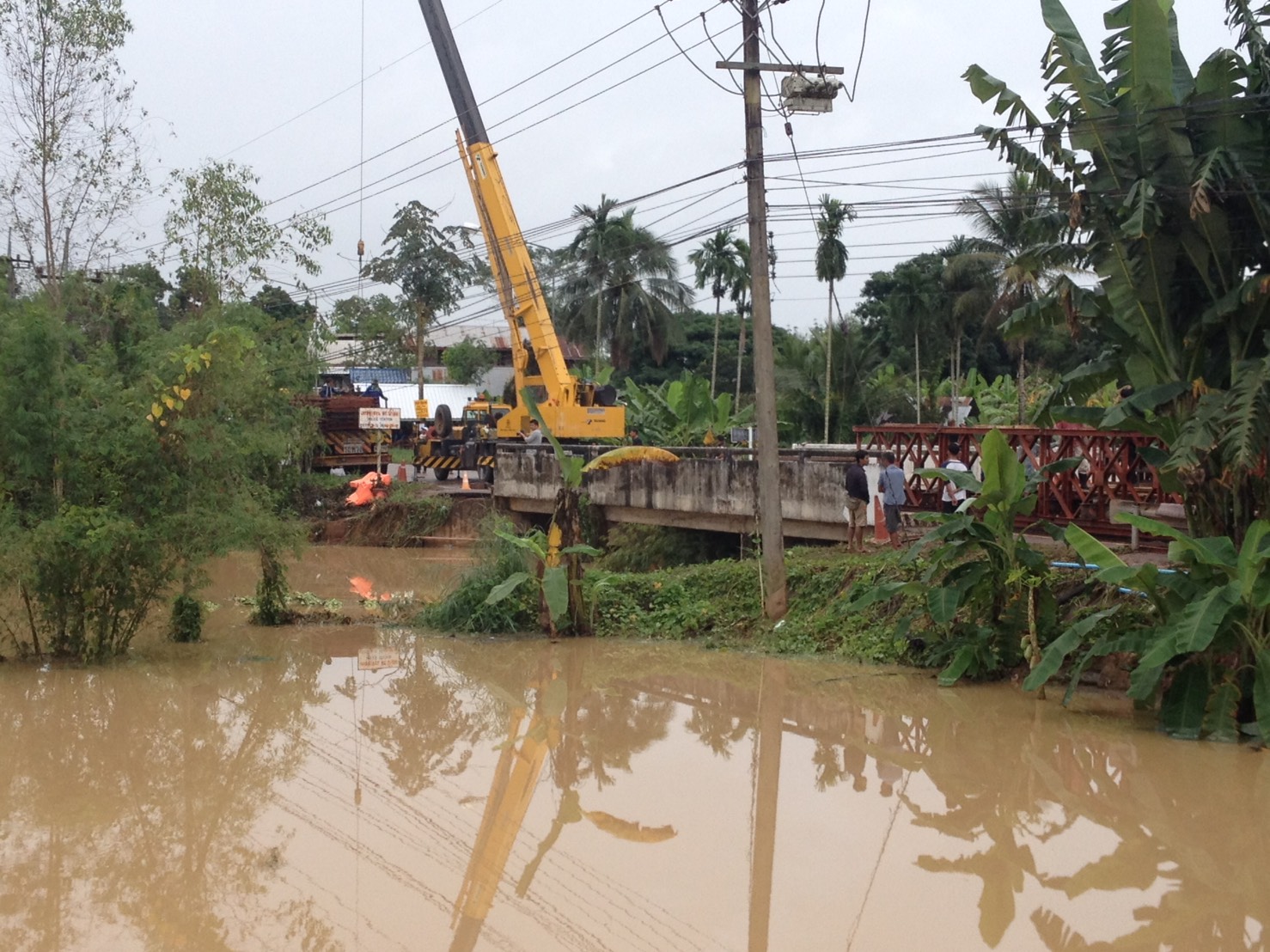 นายธวัชชัย วิสูตรรัตน์ รอง ผอ.ศูนย์สร้างสะพานที่ 2 น้ำพอง จ.ขอนแก่น เปิดเผยขณะนำเจ้าหน้าที่กว่า 50 คน พร้อมอุปกรณ์มาติดตั้งสะพานเหล็กชั่วคราวในพื้นที่ จ.อุดรธานี เนื่องจากถูกน้ำป่าพัดคอสะพานขาด 3 แห่ง ว่า จุดแรกข้ามห้วยทราย ถนนบ้านน้ำซึม-สังคม ต.นายูง อ.นายูง ความยาว 39 กม. คาดว่าจะแล้วเสร็จในวันนี้ รวมถึงจุดที่ 2 สะพานข้ามลำห้วยโป่ง บ้านเชียงดี ต.โนนทอง อ.นายูง ความยาว 15 เมตร และจุดที่ 3 สะพานข้ามลำห้วยทรง บ้านนาแค ต.นาแค อ.นายูง ความยาว 15 เมตร จะติดตั้งในวันพรุ่งนี้ ส่วนพื้นที่อื่นหากมีรายงานเข้ามาก็สามารถเตรียมอุปกรณ์และกำลังคนเข้าไปติดตั้งได้