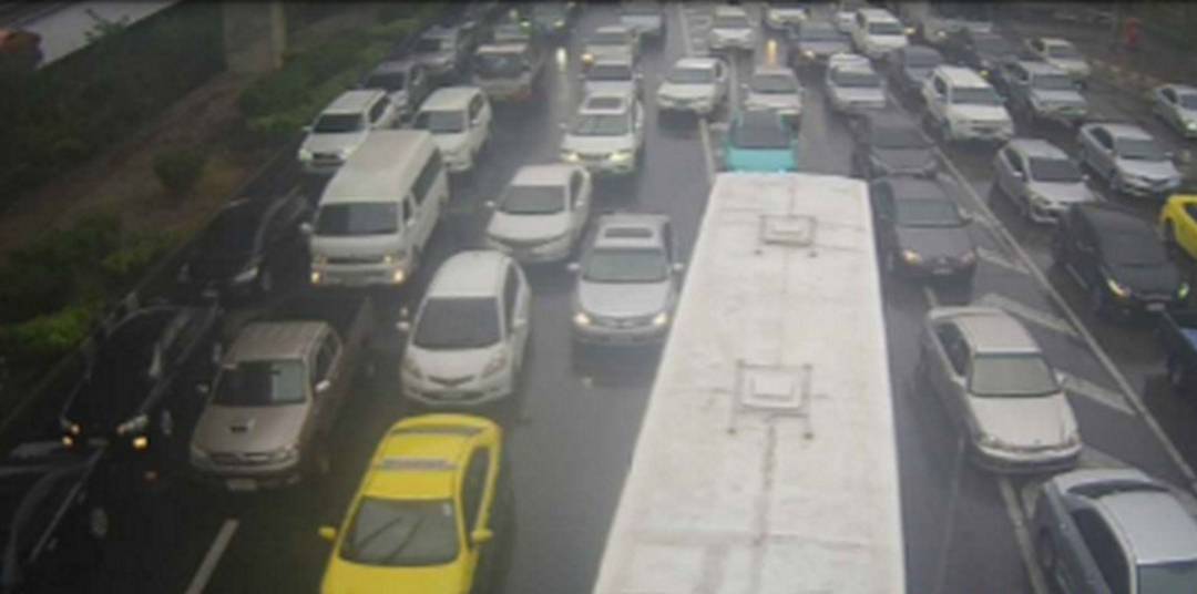 การจราจร แยกแม่พระ ขาเข้า ไปอนุสาวรีย์ชัยฯ รถหนาแน่น ส่วนขาออก ยังดี ฝนยังโปรยปราย