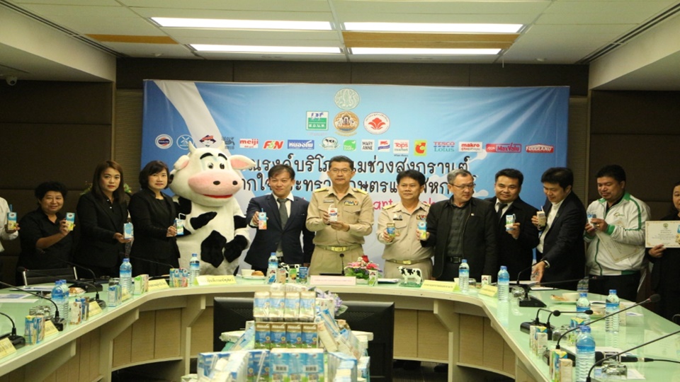 นายธีรภัทร ประยูรสิทธิ ปลัดกระทรวงเกษตรและสหกรณ์ กล่าวว่า กรมปศุสัตว์ ร่วมกับองค์การส่งเสริมกิจการโคนมแห่งประเทศไทย สมาคมอุตสาหกรรมผลิตภัณฑ์อาหารนมไทย และสมาคมผู้ค้าปลีกไทย จัดโครงการ “รณรงค์บริโภคนมช่วงสงกรานต์ จากใจกระทรวงเกษตรและสหกรณ์” โดยรณรงค์บริโภคนมตลอดปี 2560 เพื่อส่งเสริมให้มีการบริโภคนมเพิ่มขึ้น และส่งเสริมให้ประชาชนมีสุขภาพที่ดี ตลอดจนแสดงถึงการบูรณาการความร่วมมืออันดีในการขับเคลื่อนการพัฒนาภาคเกษตร ทั้งภาครัฐ ภาคเอกชน ซึ่งคณะกรรมการโคนมและผลิตภัณฑ์นม กำหนดแผนการจัดรณรงค์บริโภคนมปี 2560 ตามเทศกาลต่างๆ คือ เทศกาลปีใหม่ที่ผ่านมา เทศกาลสงกรานต์ 1-15 เมษายน 2560 วันดื่มนมโลก 1-15 มิถุนายน 2560 เทศกาลเข้าพรรษารณรงค์งดเหล้าเข้าพรรษาหันหน้าดื่มนม 5-20 กรกฎาคม เทศกาลออกพรรษา 1-15 ตุลาคม 2560 โดยรณรงค์ให้มีการดื่มนมต่อเนื่องตลอดทั้งปีจนถึงปีใหม่ ซึ่งนมถือว่าเป็นอาหารที่เหมาะกับทุกเพศทุกวัย มีสารอาหารครบ 5 หมู่ โดยเฉพาะเป็นแหล่งของโปรตีน เป็นสารอาหารที่ช่วยเสริมสร้างกล้ามเนื้อและช่วยซ่อมแซมส่วนที่สึกหรอในการใช้ชีวิตประจำวัน อีกทั้งแคลเซียมที่ช่วยเสริมสร้างกระดูกในเด็กวัยเติบโตให้มีความสูงเพิ่มขึ้น และช่วยสร้างเสริมความแข็งแรงของกระดูกและฟันของทุกเพศทุกวัย