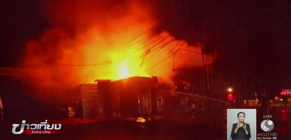 พระนครศรีอยุธยา 10 พ.ย. – รถพ่วง 18 ล้อ บรรทุกถ่านหิน พุ่งชนรถเทรลเลอร์ กลางสี่แยกไฟแดงโคกมะลิ จ.พระนครศรีอยุธยา ส่งผลให้ไฟลุกไหม้รถทั้ง 2 คัน คนขับอาการสาหัส
