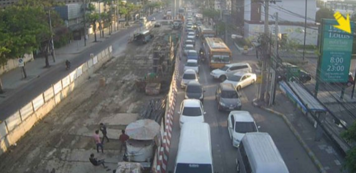 ถนนลาดพร้าว ขาเข้า จากโชคชัย 4 มุ่งหน้าห้าแยกลาดพร้าว รถมากเคลื่อนตัวช้าสลับหยุดนิ่ง