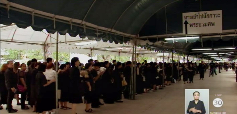 ประชาชนต่อคิวรอเข้ากราบถวายบังคมพระบรมศพไม่ขาดสาย