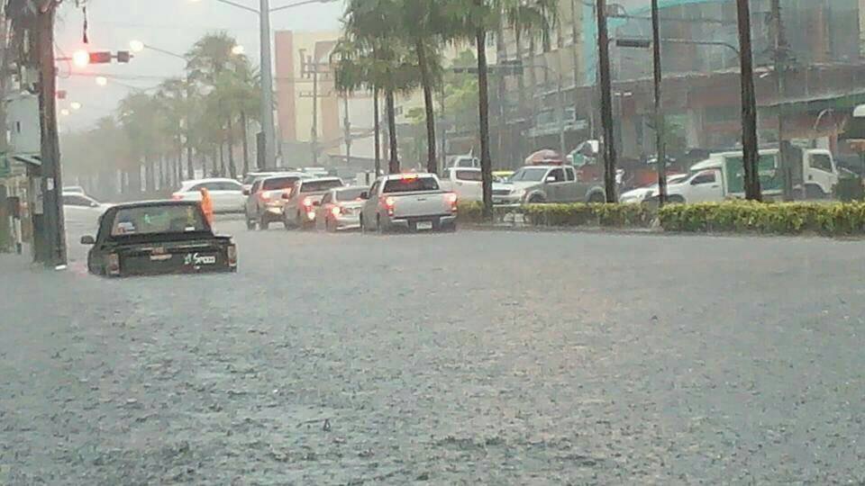 ระยอง 29 มี.ค.- ระยองลมกระโชกแรงฝนตกหนักนานนับชั่วโมง ถนนหลายสายในตัวเมืองและบ้านฉางน้ำท่วมขัง บางจุดสูง 1 เมตร