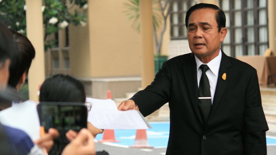 พล.อ.ประยุทธ์ จันทร์โอชา นายกรัฐมนตรีและหัวหน้าคณะรักษาความสงบแห่งชาติ (คสช.) มอบเอกสารชี้แจงเกี่ยวกับร่างพระราชบัญญัติปิโตเลียม ที่พิมพ์ด้วยตัวเองให้กับสื่อมวล พร้อมระบุ ให้ลงรายละเอียดให้ครบถ้วน