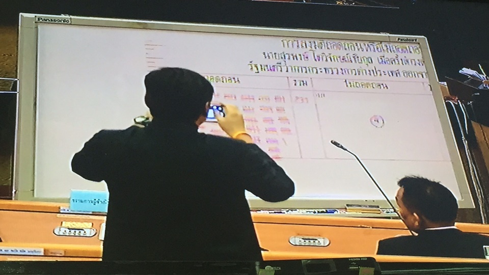 รัฐสภา 30 มี.ค.- สภานิติบัญญัติแห่งชาติมีมติถอดถอนสุรพงษ์ โตวิจักษณ์ชัยกุลออกจากตำแหน่ง กรณีออกหนังสือเดินทางธรรมดาให้ทักษิณโดยมิชอบ พร้อมถูกตัดสิทธิการเมือง 5 ปี