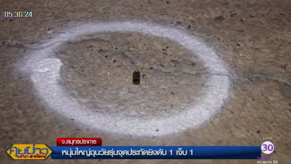 สมุทรปราการ 1 เม.ย.-หนุ่มใหญ่วัย 54 นอนเฝ้าที่ดินให้นายทุนริมถนนบางนาตราด จ.สมุทรปราการ โมโหกลุ่มวัยรุ่นก่อกวนจุดประทัดยักษ์จนนอนไม่หลับ คว้าปืนยิงตาย 1 บาดเจ็บ 1