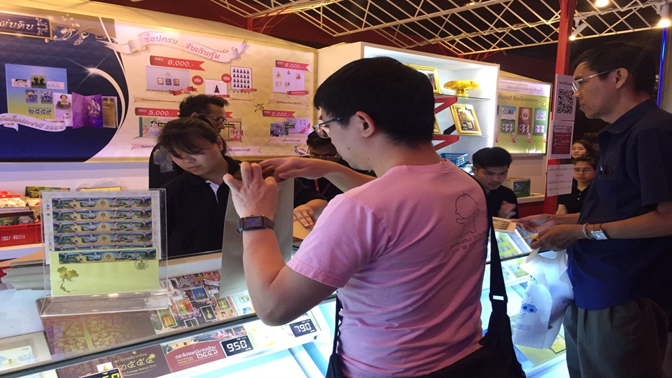 นอกจากนี้ ที่บูธไปรษณีย์ไทย ยังเปิดโอกาสให้ประชาชนจับจองแสตมป์บรมราชจักรีวงศ์ แสตมป์ที่ระลึกชุดแรกของพระเจ้าอยู่หัว โดยจะเริ่มจำหน่ายประมาณเดือนกรกฎาคม และแสตมป์ชุดพระราชพิธีถวายพระเพลิงพระบรมศพ พระเจ้าอยู่หัวรัชกาลที่ 9 ที่จะจัดจำหน่ายเดือนตุลาคมเป็นที่แรกด้วย ซึ่งมีประชาชนมาแสดงความจำนงจองกันเป็นจำนวนมาก.-สำนักข่าวไทย