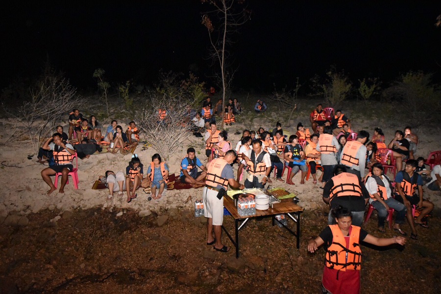 กาญจนบุรี 2 เม.ย.- กาญจนบุรีลมฝนกระโชกแรง นักท่องเที่ยวกว่า 70 ชีวิต ล่องแพทะเลสาบเขื่อนศรีนครินทร์หนีวุ่นพักค้างคืนเกาะกลางน้ำ เรือนแพเสียหาย 2 หลัง จนท.เร่งนำเรือเข้าช่วยเหลือพากลับฝั่ง