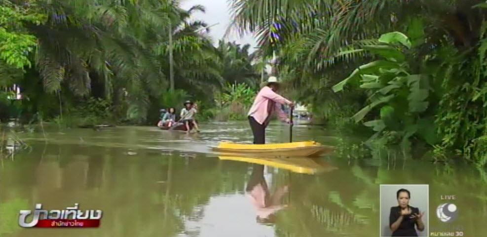 ตั้งแต่เมื่อวานนี้ (12 ธ.ค.) มวลน้ำจำนวนมากที่ไหลจาก จ.นครศรีธรรมราช และกระบี่ ลงแม่น้ำตาปี จนหลากเข้าท่วมชุมชนบ้านทับชัน ชุมชนบ้านไทรงาม ชุมชนบ้านไทยทรงดำ และชุมชนบ้านดอนมะลิ จ.สุราษฎร์ธานี ระดับน้ำสูงกว่า 2 เมตร ล่าสุดเช้านี้ระดับน้ำเพิ่มสูงขึ้นเป็น 3 เมตร ชาวบ้านริม 2 ฝั่งแม่น้ำตาปีต้องเร่งอพยพขนย้ายสิ่งของและสัตว์เลี้ยงขึ้นไปอาศัยอยู่บนที่สูง ปลาในกระชังของชุมชนบ้านหนองจอก เกิดอาการน็อกน้ำ เนื่องจากปรับสภาพไม่ทัน ขณะที่โรงเรียนบ้านไทรงาม ต้องประกาศปิดเรียนอย่างไม่มีกำหนด เนื่องจากสถานการณ์ทวีความรุนแรงขึ้นเรื่อยๆ