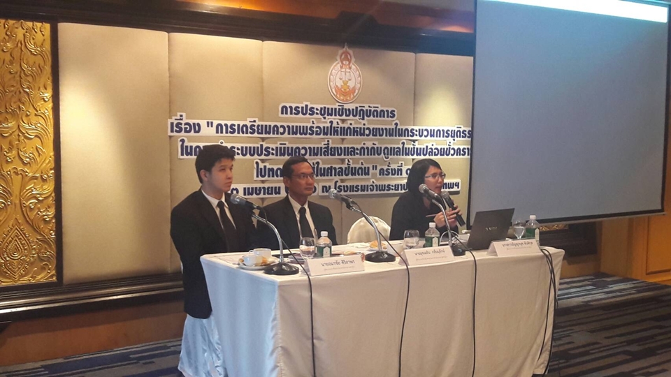 ในการประชุมเชิงปฏิบัติการเรื่อง “การเตรียมความพร้อมให้แก่หน่วยงานในกระบวนการยุติธรรมในการนำระบบประเมินความเสี่ยงและกำกับดูแลในชั้นปล่อยตัวชั่วคราวไปทดลองใช้ในศาลชั้นต้น ครั้งที่ 11 จัดโดยสำนักงานศาลยุติธรรมโดยสถาบันวิจัยและพัฒนารพีพัฒนศักดิ์ มีการเชิญผู้แทนจากหน่วยงานต่างๆ เช่น ตำรวจ อัยการ เจ้าหน้าที่ศาลอาญาธนบุรี และศาลจังหวัดมีนบุรีร่วมรับฟังข้อมูล เพื่อเตรียมพร้อมนำโครงการปล่อยตัวชั่วคราวโดยไม่ใช้เงินเป็นหลักประกัน ทดลองในระยะที่ 2