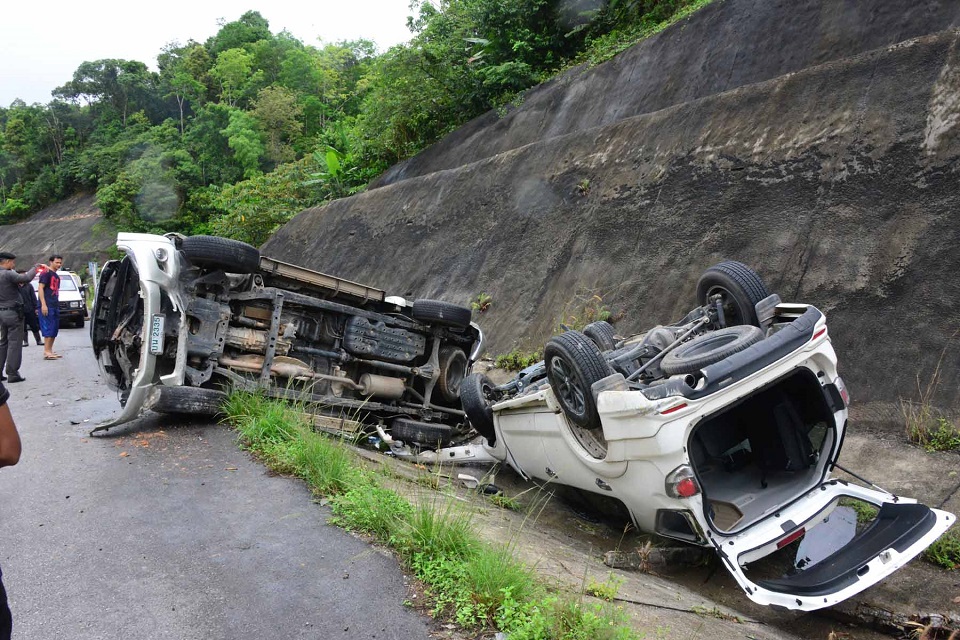 นายภาณุพงษ์ จรัลพงษ์ อายุ 31 ปี ชาวจังหวัดนครศรีธรรมราช ให้การว่า ขับรถพาน้องสาวมาจากพัทลุง มุ่งหน้า จ.ตรัง และมีฝนตกตลอดทาง เมื่อมาถึงบริเวณดังกล่าวเป็นทางโค้ง จึงพยายามเบรกชะลอความเร็ว ก่อนที่รถจะเสียหลักพลิกหงายท้อง น้องสาวได้รับบาดเจ็บ ขณะเดียวกัน รถกระบะแคปที่แล่นตามมารีบหักหลบอุบัติเหตุ ทำให้รถหมุนไปตกข้างทางและกระแทกกับเชิงเขา คนในรถบาดเจ็บ 2 คน.-สำนักข่าวไทย