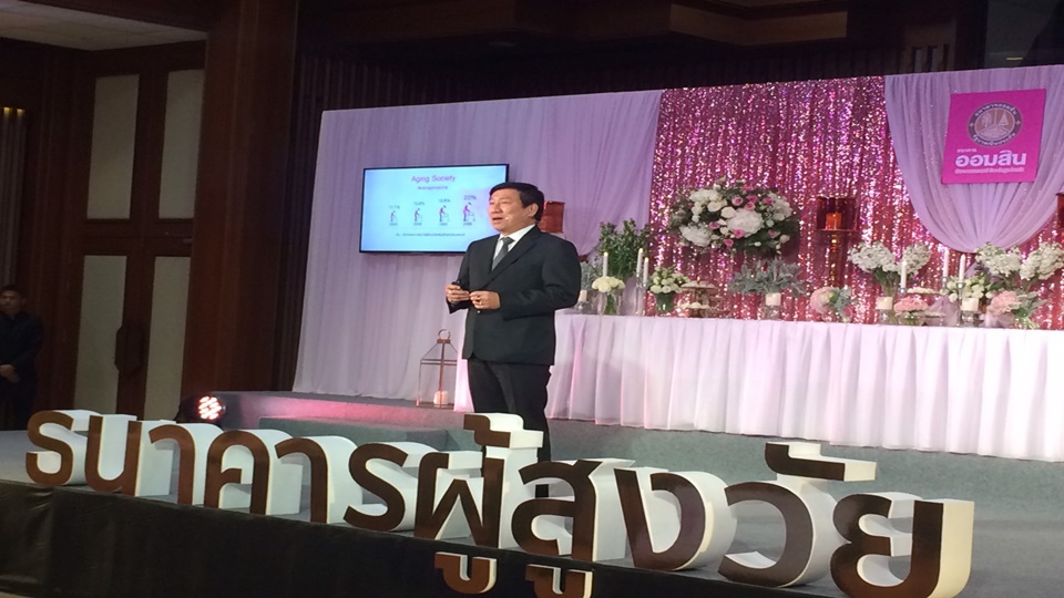 นายชาติชาย พยุหนาวีชัย ผู้อำนวยการธนาคารออมสิน เปิดเผยว่า นับจากปี 2548 ประเทศไทยก้าวสู่สังคมผู้สูงวัยมีผู้สูงอายุเพิ่มขึ้น ขณะที่ประชากรโดยรวมมีแนวโน้มลดลง พลเอกประยุทธ์ จันทร์โอชา นายกรัฐมนตรี มีนโยบายให้หน่วยงานที่เกี่ยวข้องมีแผนรองรับการเปลี่ยนแปลงดังกล่าวและพร้อมที่จะช่วยกันดูแลผู้สูงวัย โดยธนาคารออมสินเล็งเห็นว่าผู้สูงอายุควรได้รับการดูแลเป็นพิเศษด้านความมั่นคงทางการเงิน จึงพัฒนาผลิตภัณฑ์การเงินที่จะให้บริการสำหรับผู้สูงวัยในชื่อ “ธนาคารผู้สูงวัย” เพื่อให้ได้รับบริการที่เหมาะสมพร้อมการดูแลเป็นอย่างดี โดยพร้อมที่จะให้บริการแล้วตั้งแต่บัดนี้เป็นต้นไป