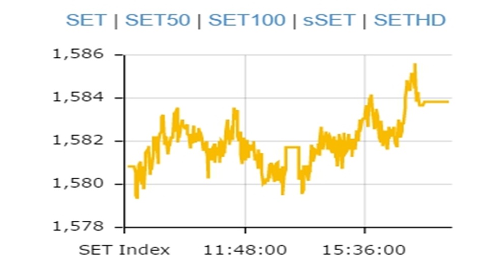 ผู้สื่อข่าวรายงานว่าการซื้อขายหุ้นวันนี้ (4 เม.ย.) ดัชนีปิดตลาดที่ระดับ 1,583.82 จุด เพิ่มขึ้น 2.96 จุด มูลค่าการซื้อขาย 37,273.47 ล้านบาท โดยดัชนีเคลื่อนไหวทั้งแดนบวก-ลบ ขยับขึ้นแตะจุดสูงสุดของวันที่ระดับ 1,586.04 จุด และต่ำสุดที่ระดับ 1,579.07 จุด