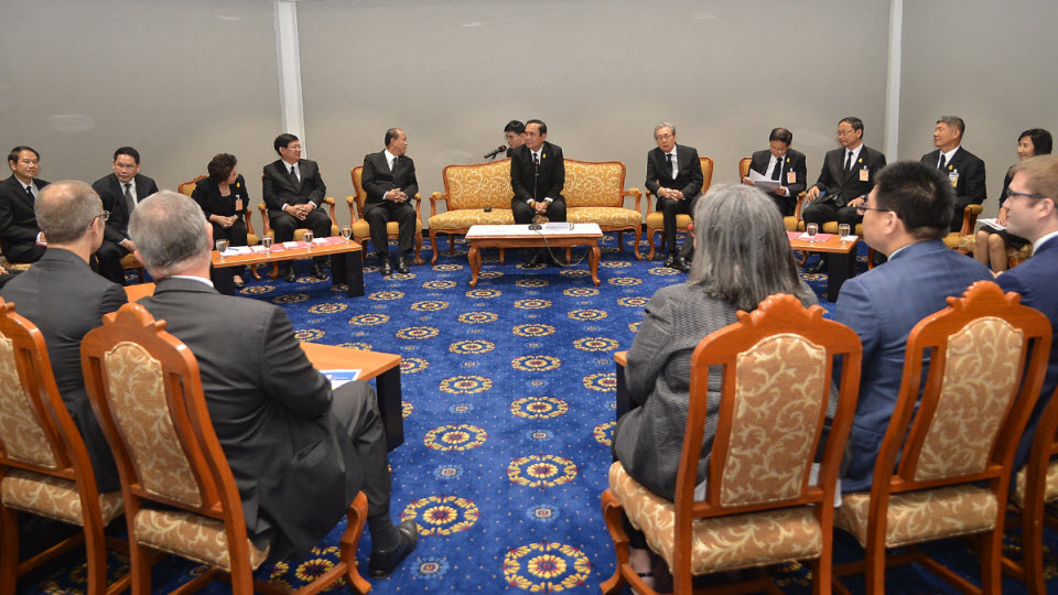 พล.อ.ประยุทธ์ จันทร์โอชา นายกรัฐมนตรีขอบคุณภาคเอกชน ที่เชื่อมั่นต่อศักยภาพของประเทศไทย และขอบคุณในความร่วมมือที่มีให้กับประเทศไทยมาโดยตลอด ในโอกาสที่ผู้บริหารระดับสูงของบริษัทเอกชนชั้นนำต่างชาติ ที่สนใจลงทุนในโครงการพัฒนาระเบียงเศรษฐกิจพิเศษภาคตะวันออก (EEC) เข้าเยี่ยมคารวะ ณ ห้องรับรอง ชั้น 2 อาคารผู้โดยสารหลังใหม่ ท่าอากาศยานอู่ตะเภา อำเภอบ้านฉาง จังหวัดระยอง