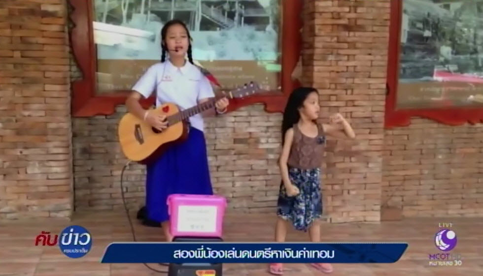 เชียงใหม่ 6 เม.ย.-สองพี่น้องเล่นดนตรีหาค่าเทอม ที่หน้าวัดพระธาตุดอยสุเทพ แม่เผยแต่ก่อนเคยเล่นถนนคนเดิน แต่ถูกสั่งห้าม ด้านผู้ว่าฯรับปากจะหาแนวทางช่วยเหลือ