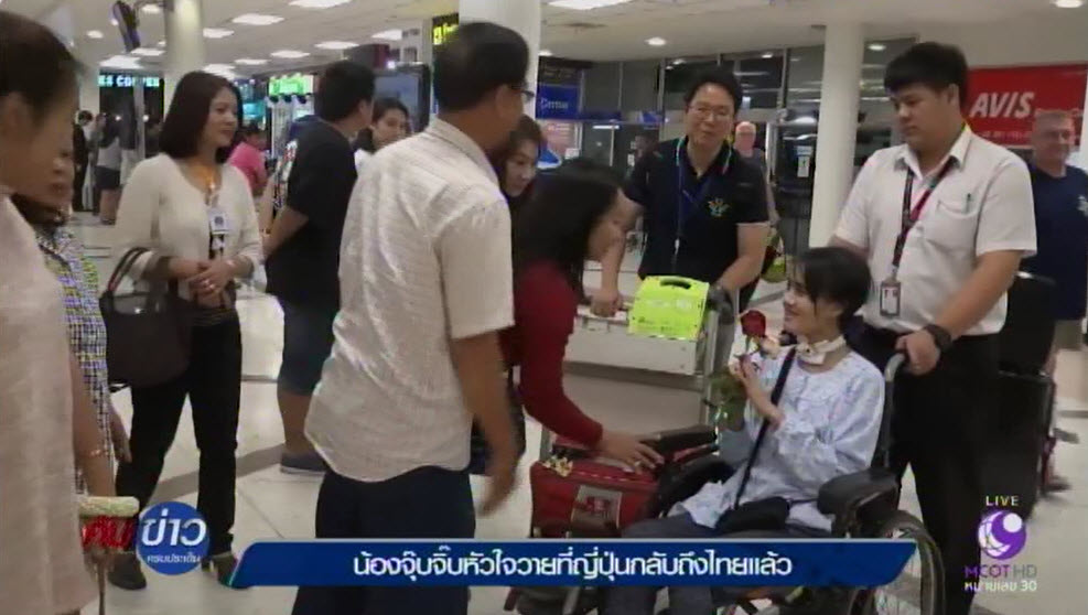 เชียงใหม่ 6 เม.ย.-น้องจุ๊บจิ๊บที่เส้นเลือดหัวใจตีบกระทันหันระหว่างไปเที่ยวญี่ปุ่น อาการดีขึ้น และกลับถึงเชียงใหม่แล้ว