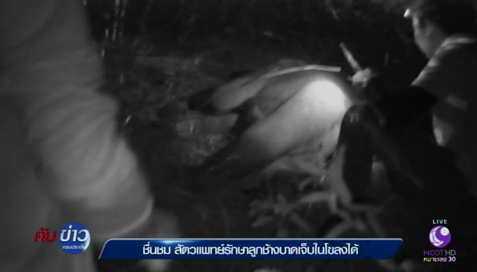 บึงกาฬ 6 เม.ย.-ชื่นชม ทีมสัตวแพทย์รักษาลูกช้างป่าที่บาดเจ็บ นับว่าเป็นครั้งแรกที่รักษาลูกช้างที่อยู่ในโขลงได้