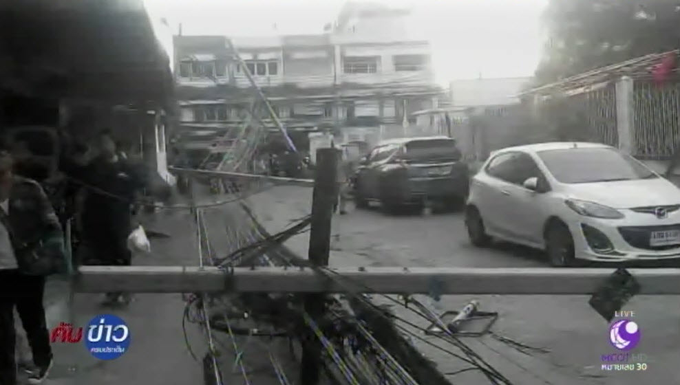 กทม. 7 เม.ย.-ชาวบ้านในซอยประชาสงเคราะห์ 16 ย่านดินแดง บันทึกคลิปเหตุการณ์อาคารอยู่ระหว่างรื้อถอนสูง 5 ชั้นถล่มลงมาทับเสาไฟฟ้า ส่งผลให้เสาไฟฟ้าล้ม 8 ต้นไม่มีผู้ได้รับบาดเจ็บ รถยนต์เสียหาย 1 คัน