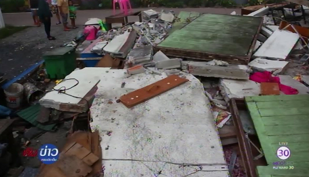 สมุทรปราการ 7 เม.ย.-คุณยายวัย 60 ปี รู้สึกตัวกลางดึกขณะที่บ้านปูนกำลังทรุดตัวและพังถล่ม ตะโกนเรียกลูกหลานในบ้านพากันหนีตายหวุดหวิด รวม 5 ชีวิต ในจำนวนนี้มีเด็กวัย 10 และ 3 ขวบรวมอยู่ด้วย