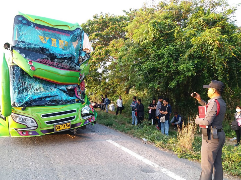 เมื่อเวลา 06.00 น. (9 เม.ย.) ร.ต.ท.ชัชชัย ชัยยะ พนักงานสอบสวน สภ.ไชโย จ.อ่างทอง รับแจ้งเหตุมีผู้บาดเจ็บจากอุบัติเหตุรถโดยสารปรับอากาศชนท้ายรถพ่วงบนถนนสายเอเชีย (ขาขึ้นนครสวรรค์) ช่วงหลักกิโลเมตรที่ 61-62 หมู่ 1 ต.จระเข้ร้อง จึงประสานชุดเจ้าหน้าที่เข้าตรวจสอบพร้อมหน่วยกู้ภัยพบรถโดยสาร ทะเบียน 30-0169 กรุงเทพฯ ด้านหน้าเสียหาย ผู้โดยสารบาดเจ็บ 10 ราย การสอบสวนคนขับรถพ่วงให้การว่า บรรทุกถ่านหินออกจากจังหวัดพระนครศรีอยุธยามุ่งหน้าไปส่งโรงปูนใน จ.นครสวรรค์ ขณะแล่นมาในช่องทางซ้ายมีรถทัวร์ขับเข้าชนท้ายอย่างแรง