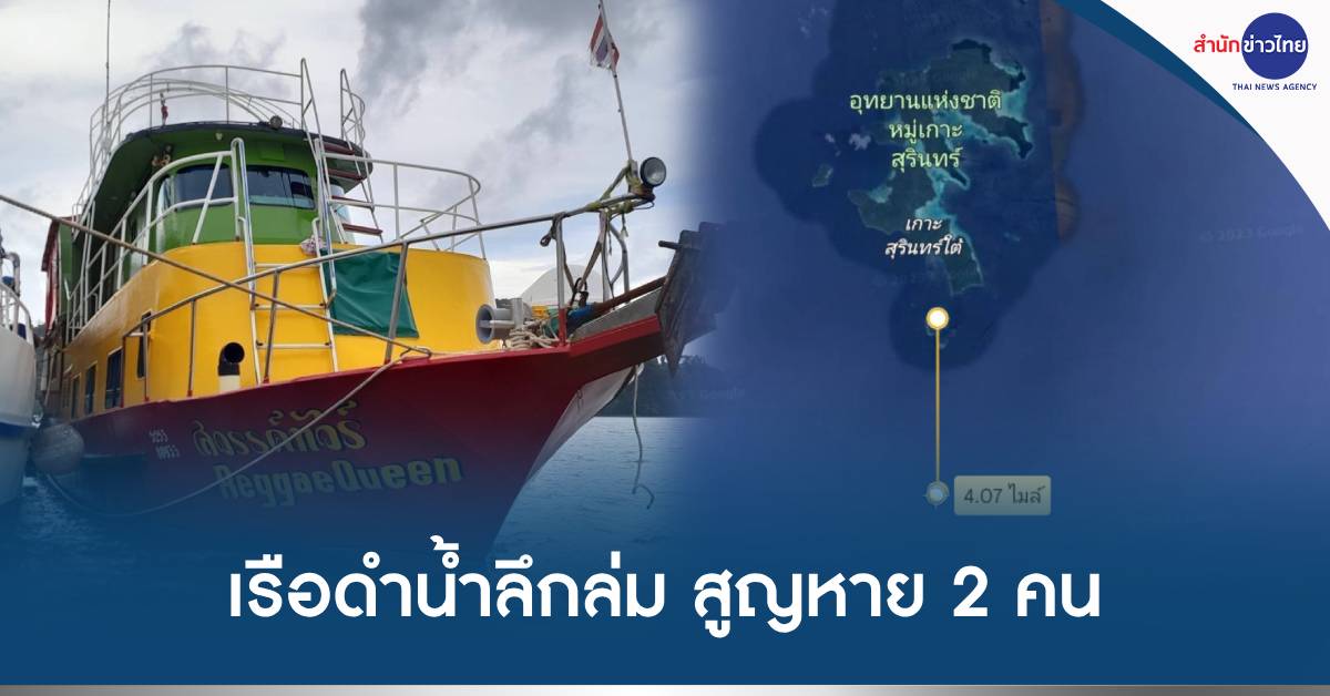 พังงา 23 ธ.ค.-เรือนำเที่ยวดำน้ำลึกล่มที่เกาะตอรินลา หมู่เกาะสุรินทร์ จ.พังงา เร่งค้นหานักท่องเที่ยวสูญหาย 2 คน