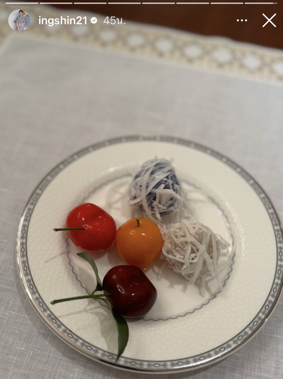 สำหรับเมนูอาหารกลางวัน ที่นายทักษิณเตรียมไว้เลี้ยงรับรองในวันนี้ ส่วนใหญ่เป็นอาหารไทย หนึ่งในนั้นคือกุ้งแม่น้ำเผาจากจังหวัดสุพรรณบุรี เพราะสมเด็จฮุนเซนมีความชื่นชอบในอาหารไทย ส่วนเมนูขนมหวาน น.ส.แพทองธาร ได้โพสต์ลงไอจีสตอรี่ เป็นภาพขนมต้มและลูกชุบ