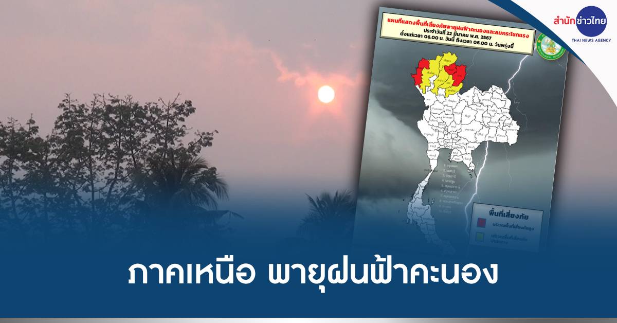 กรมอุตุนิยมวิทยา พยากรณ์อากาศ 24 ชั่วโมงข้างหน้า คลื่นกระแสลมฝ่ายตะวันตกจากประเทศเมียนมาเคลื่อนเข้าปกคลุมภาคเหนือ และประเทศลาวตอนบน ลักษณะเช่นนี้ทำให้ภาคเหนือมีพายุฝนฟ้าคะนอง กับมีลมกระโชกแรง และมีลูกเห็บตกบางแห่ง ประกอบกับมีลมใต้และลมตะวันออกเฉียงใต้พัดปกคลุมภาคตะวันออกเฉียงเหนือตอนล่าง ภาคกลางตอนล่าง และภาคตะวันออก ลักษณะเช่นนี้ทำให้บริเวณดังกล่าวมีฝนฟ้าคะนองเกิดขึ้นได้บางพื้นที่ ขอให้ประชาชนในภาคเหนือระวังอันตรายจากพายุฝนฟ้าคะนอง ลมกระโชกแรง และลูกเห็บตก ส่วนเกษตรกรควรเตรียมการป้องกันและระวังความเสียหายที่จะเกิดต่อผลผลิตทางการเกษตร ในขณะที่ความกดอากาศต่ำเนื่องจากความร้อนปกคลุมประเทศไทยตอนบน ลักษณะเช่นนี้ทำให้บริเวณดังกล่าวมีอากาศร้อนกับมีฟ้าหลัวในตอนกลางวัน ขอให้ประชาชนดูแลรักษาสุขภาพเนื่องจากสภาพอากาศที่ร้อนขึ้นไว้ด้วย