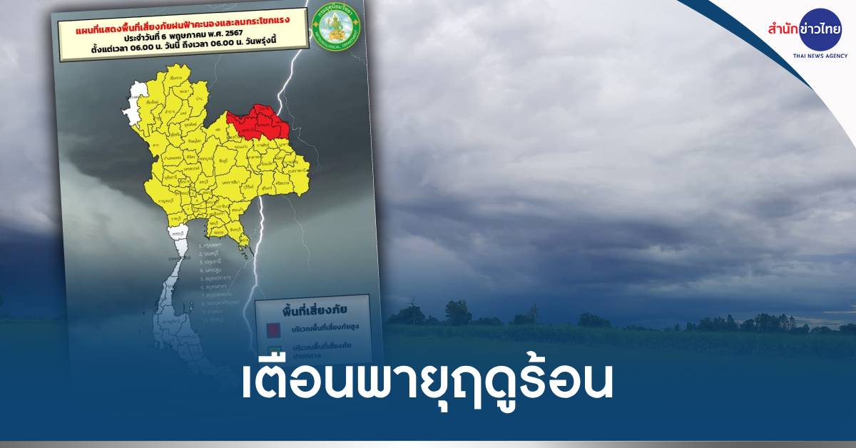 ในช่วงวันที่ 6-7 พ.ค.67 จะมีแนวพัดสอบของลมตะวันออกเฉียงใต้และลมใต้พัดปกคลุมบริเวณภาคตะวันออกเฉียงเหนือ ภาคตะวันออก ภาคกลาง และภาคเหนือตอนล่าง ในขณะที่ประเทศไทยตอนบนมีอากาศร้อนถึงร้อนจัด ทำให้บริเวณดังกล่าวมีพายุฤดูร้อนเกิดขึ้นหลายพื้นที่ โดยมีลักษณะของพายุฝนฟ้าคะนอง ลมกระโชกแรง และลูกเห็บตกบางแห่ง รวมถึงอาจมีฟ้าผ่าเกิดขึ้นได้ ขอให้ประชาชนบริเวณประเทศไทยตอนบนระวังอันตรายจากพายุฤดูร้อน โดยหลีกเลี่ยงการอยู่ในที่โล่งแจ้ง ใต้ต้นไม้ใหญ่ สิ่งปลูกสร้าง และป้ายโฆษณาที่ไม่แข็งแรง สำหรับเกษตรกรควรเตรียมการป้องกันและระวังความเสียหายที่จะเกิดต่อผลผลิตทางการเกษตรและอันตรายต่อสัตว์เลี้ยงไว้ด้วย