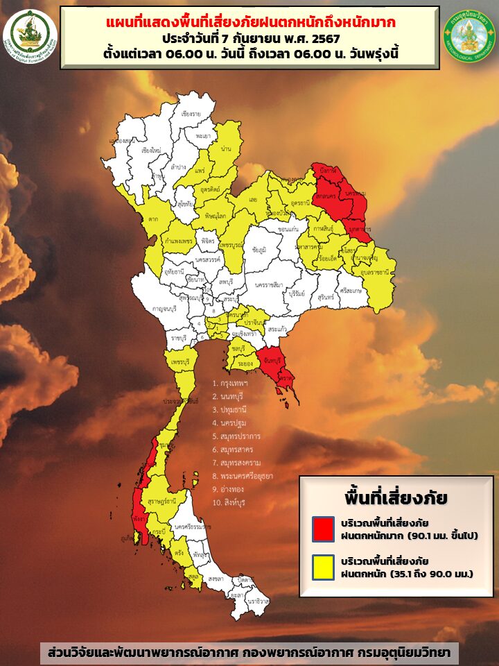 กทม. 7 ก.ย.- กรมอุตุฯ เผยทั่วทุกภาคยังมีฝนตกต่อเนื่อง เตือน “เหนือ-อีสาน” เตรียมรับมือฝนถล่ม-ลมแรง เฝ้าระวังพายุ “ยางิ” เคลื่อนขึ้นฝั่งเวียดนาม