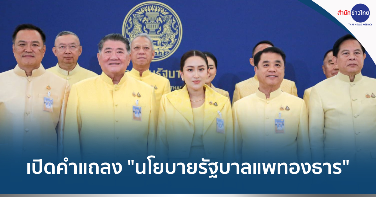 กรุงเทพฯ 7 ก.ย. – เปิดคำแถลง “นโยบายรัฐบาลแพทองธาร” กับ 10 นโยบายเร่งด่วน เดินหน้าผลักดันโครงการดิจิทัลวอลเล็ต ให้ความสำคัญกลุ่มเปราะบางลำดับแรก-การพักหนี้ SME เร่งออกมาตรการลดราคาพลังงาน เจรจาพื้นที่ทับซ้อนไทย-กัมพูชา ดันเศรษฐกิจใต้ดินไว้บนดิน ส่งเสริมการท่องเที่ยวรูปแบบใหม่ “เอนเตอร์เทนเมนต์คอมเพลกซ์” กำหนดโครงสร้างอัตราค่าโดยสาร รองรับนโยบายค่าโดยสารราคาเดียวตลอดสาย