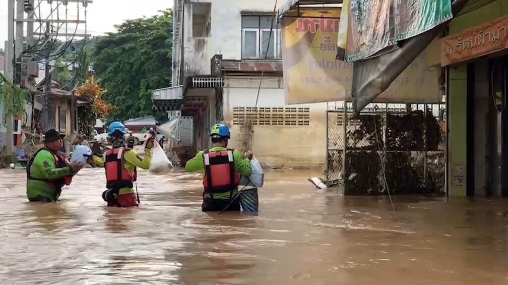 เชียงราย 13 ก.ย. – แม้ตอนนี้น้ำท่วม จ.เชียงราย จะลดลงแล้วในบางพื้นที่ แต่บางพื้นที่ยังคงมีน้ำท่วมขัง ทำให้การช่วยเหลือผู้ประสบภัยจากหน่วยงานต่างๆ ยังคงดำเนินไปอย่างไม่ลดละ และมีการคาดการณ์ว่าจะมีมวลน้ำไหลมาอีกระลอก