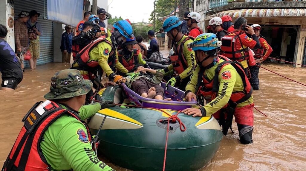 ในตัวเมืองเชียงราย ช่วงเช้าวันนี้ มูลนิธิกุศลศรัทธาสุราษฎร์ธานี นำเรือออกส่งอาหารให้กับประชาชนตามบ้านเรือน และให้ความช่วยเหลือนำอพยพออกจากบ้านไปอยู่ในที่ปลอดภัย