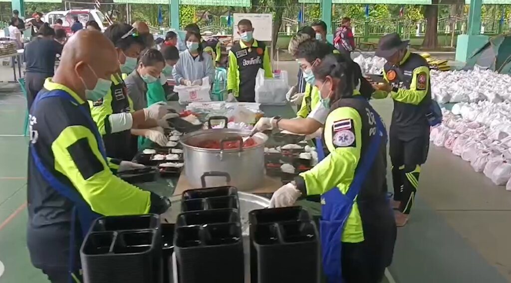 หน่วยกู้ชีพกู้ภัย มูลนิธิป่อเต็กตึ๊ง ยังคงช่วยเหลืออพยพประชาชนและคนป่วย คนแก่ คนพิการ รวมถึงหมา แมว ในพื้น อ.แม่สาย จ.เชียงราย ออกมาอยู่ในที่ปลอดภัย พร้อมกับทำอาหารปรุงสุกและยารักษาโรค แจกจ่ายให้กับประชาชนที่โรงครัว และนำไปแจกจ่ายให้กับชาวบ้านที่ยังอยู่ในบ้าน