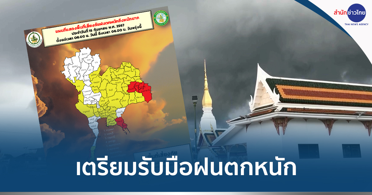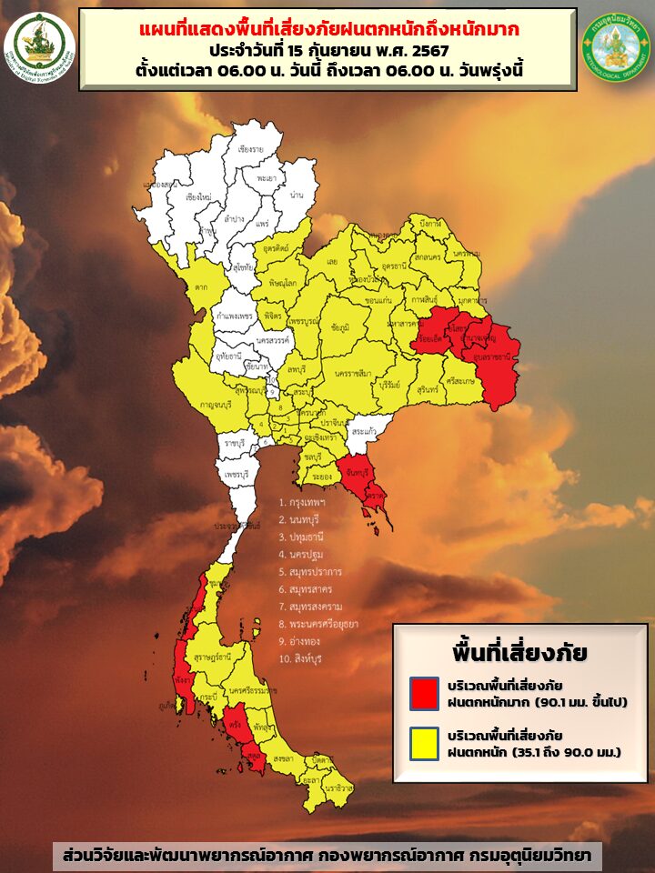 กทม.15 ก.ย.- กรมอุตุฯ เผย ประเทศไทยมีฝนเพิ่มขึ้นและตกหนักบางแห่ง เตือน “อีสาน-ตะวันออก-ใต้” รับมือฝนถล่ม อาจเกิดน้ำท่วมฉับพลัน น้ำป่าไหลหลาก