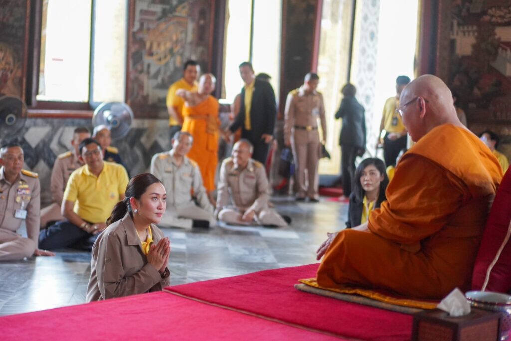 ทั้งนี้ ที่วัดอรุณราชวรารามราชวรมหาวิหาร นายกฯ ได้สักการะพระบรมราชานุสาวรีย์ พระบาทสมเด็จพระพุทธเลิศหล้านภาลัย รัชกาลที่ 2 จากนั้นทำความเคารพพระบรมฉายาลักษณ์ พระบาทสมเด็จพระเจ้าอยู่หัว สมเด็จพระนางเจ้าฯ พระบรมราชินี และสมเด็จพระนางเจ้าสิริกิติ์ พระบรมราชินีนาถ พระบรมราชชนนีพันปีหลวง ก่อนเวลา 15.40 น. นายกรัฐมนตรี เข้ากราบนมัสการพระพรหมวัชรเมธี เจ้าอาวาสวัดอรุณราชวราราม ภายในพระอุโบสถ โดยเจ้าอาวาสให้กำลังใจ พร้อมขอให้นายกฯ ทำหน้าที่ได้เต็มที่และประสบความสำเร็จ