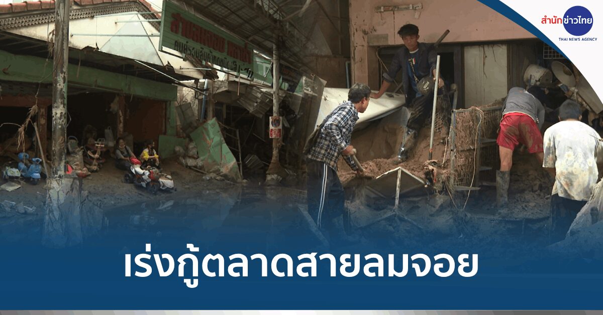 เจ้าหน้าที่ระดมกำลังและเครื่องจักรกล เข้าตักโคลนและเศษซากความเสียหายออกจากร้านค้าเกือบ 200 แห่งในตลาดสายลมจอย ตลาดสินค้าขึ้นชื่อชายแดนแม่สายที่จมน้ำ จมโคลนมา 10 วันแล้ว ทีมข่าวเดินฝ่าโคลลนเข้าไปสำรวจด้านในพบว่าหลายร้านถูกน้ำพัดโคลนเกือบจะท่วมร้าน สินค้าซึ่งส่วนใหญ่เป็นเสื้อผ้า ผ้าห่ม และเครื่องใช้ไฟฟ้าได้รับความเสียหายทั้งหมด