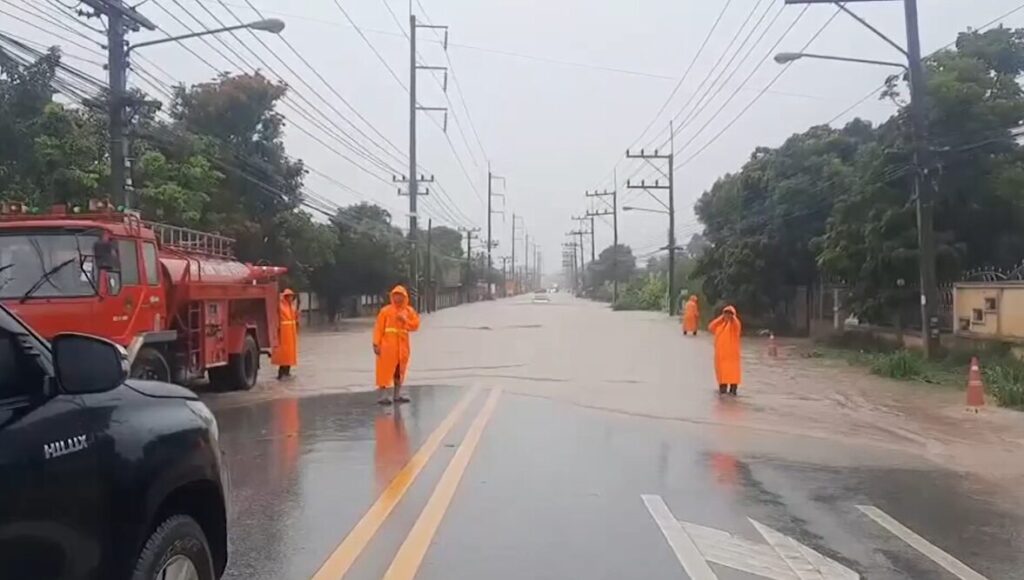 ขณะที่เจ้าหน้าที่ต้องปิดเส้นทางจราจร บริเวณถนนสุริยวงศ์ ชุมชนฟ้าใหม่ ถนนนันทารามซอย 5 ก ระดับน้ำยังสูง 30–50 เซนติเมตร แต่ก็ยังมีรถจักรยานยนต์และรถยนต์ ฝ่ากระแสน้ำเข้าไป ทำให้รถจักรยานยนต์ดับหลายคัน ส่วนร้านค้าต้องนำเก้าอี้ หรือถังแก็สมาตั้งไว้หน้าร้าน เพื่อให้รถยนต์ชะลอความเร็ว