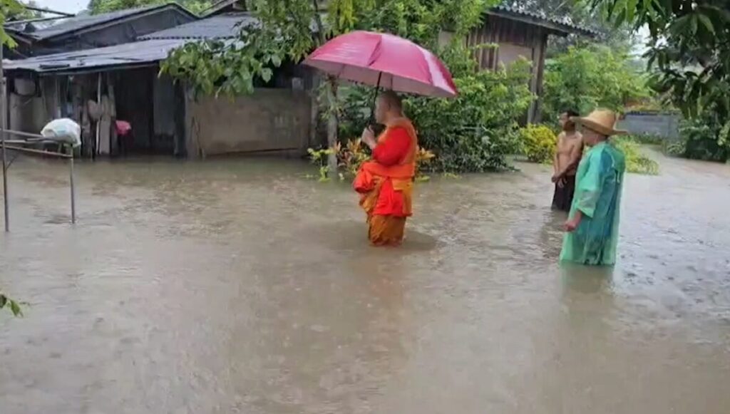 พระสงฆ์ นำเรือกู้ภัย ออกช่วยชาวบ้าน