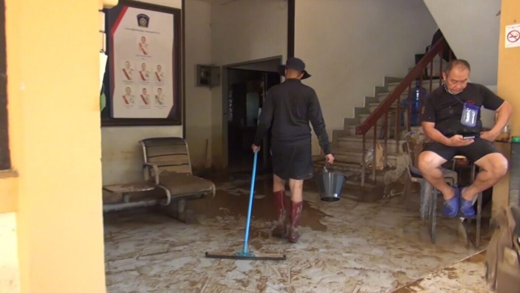 ขณะที่พื้นที่ที่เคยมีน้ำท่วมสูงเกือบ 2 เมตร อย่างในชุมชนป่าพร้าวนอก หลายครัวเรือน ก็เริ่มทำความสะอาดหลังน้ำลดลงต่ำกว่าระดับตลิ่งแล้วเช่นกัน ส่วนพื้นที่กองบัญชาการตำรวจภูธรภาค5 และพื้นที่แฟลตตำรวจ ที่ติดกับลำน้ำปิงระดับน้ำได้ลดลงเข้าสู่ภาวะปกติแล้ว แต่พื้นที่ยังเต็มไปด้วยโคลนตามพื้นที่ถนน และลานจอดรถ สร้างความเสียหาย โดยเฉพาะรถยนต์และรถจักรยานยนต์ ที่มีแต่คราบน้ำและดินโคลน โดยทุกฝ่ายต่างล้างทำความสะอาดพื้น ซึ่งได้รถน้ำขององค์กรปกครองส่วนท้องถิ่น มาช่วยฉีดล้าง แต่คาดใช้เวลาในการล้างดินโคลนออกให้หมดนานเป็นสัปดาห์ ส่วนแม่บ้านตำรวจ ได้ปรุงอาหาร เลี้ยงกำลังพลที่ประสบปัญหาอุทกภัยทุกวัน รวมทั้งมีประชาชนนำอาหารกล่องและน้ำดื่ม มาช่วยเหลืออย่างต่อเนื่อง