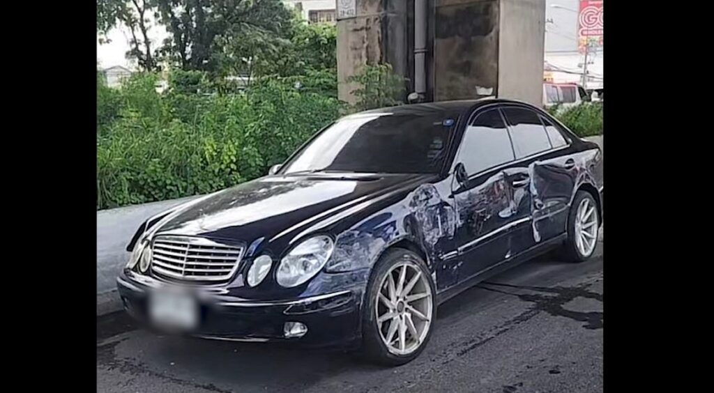 มีรายงานว่าประกันภัยของรถเบนซ์สีดำที่ถูกรถบัสเบียดชน เล่าว่า คนขับรถเบนซ์ได้ขับรถจากรังสิต กำลังเข้ากรุงเทพฯ โดยวิ่งมาทางขวาสุด จู่ๆ รถบัสบรรทุกนักเรียนซึ่งวิ่งมาทางเลนกลาง เข้ามาเบียดด้านซ้าย จนรถไปกระแทกกับแบริเออร์เกาะกลางถนนจนเสียหาย โชคดีคนขับรถเบนซ์รีบเบรกรถ จากนั้นมีคนที่ขับรถตามมาจอดเรียกให้คนขับรถเบนซ์ลงจากรถ เพราะได้กลิ่นเหม็นก๊าซ จึงรีบลงมา ก่อนจะพบว่ารถบัสที่วิ่งออกไปประมาณ 500 เมตร เกิดเพลิงไหม้ขึ้น