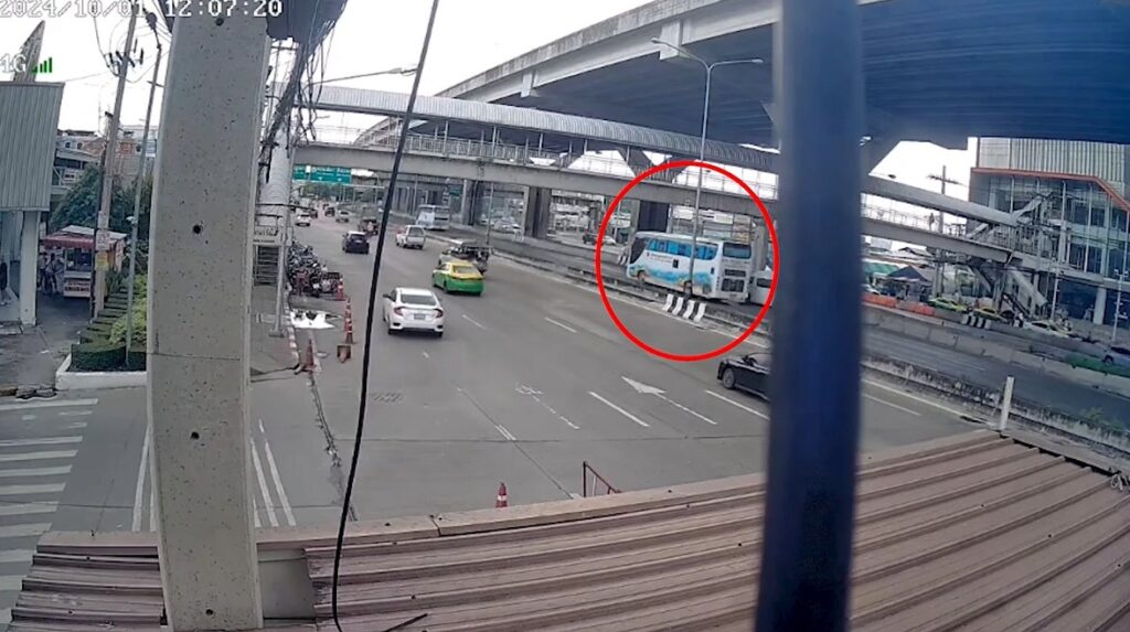 เวลา 12.07 น. กล้องวงจรปิดบริเวณถนนวิภาวดีรังสิต จับภาพรถบัสทัศนศึกษาทั้ง 3 คัน วิ่งผ่านไป จากคลิปจะเห็นรถบัสคันที่ 2 ซึ่งเป็นคันเกิดเหตุ วิ่งผ่านไป จากนั้นมีรถเบนซ์สีดำวิ่งตามไปด้วยความเร็วในช่องทางขวาสุด ซึ่งเป็นวินาทีก่อนที่รถจะเกิดอุบัติเหตุไม่นาน