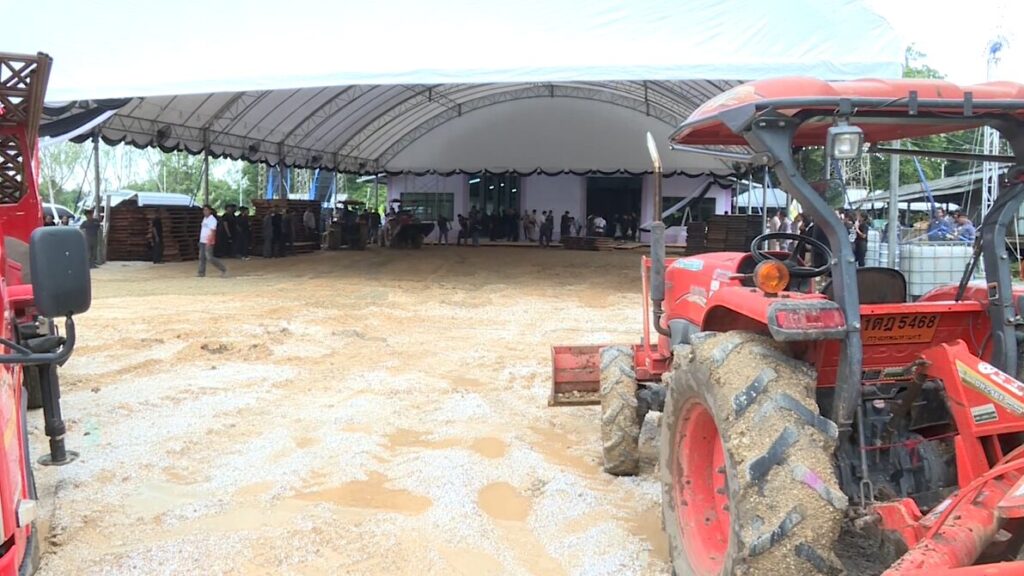 ขณะที่เมื่อคืนที่ผ่านมามีฝนตกลงมาอย่างหนัก ทำให้สภาพพื้นที่กลายเป็นดินเลน ทำให้เช้านี้ต้องมีการนำรถบรรทุกดิน เข้ามาถมปรับพื้นที่กันอีกรอบ เพื่อเตรียมพร้อมสถานที่รองรับพิธีการในช่วงบ่ายวันนี้.-สำนักข่าวไทย