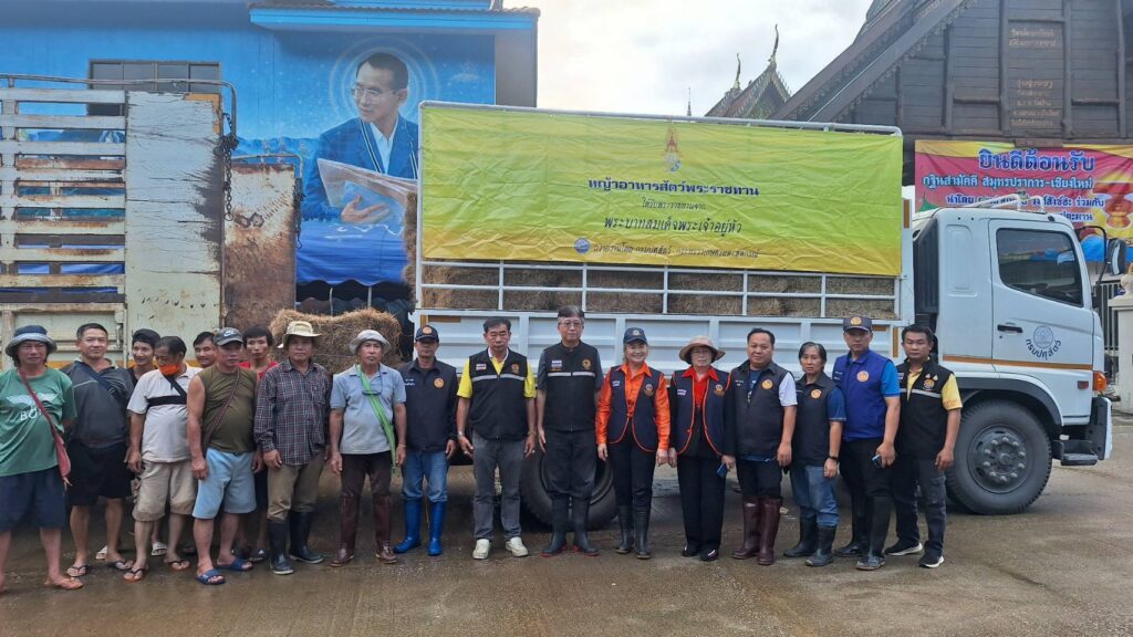 พระนครศรีอยุธยา 5 ต.ค. – รมว.เกษตรฯ สั่งอธิบดีกรมปศุสัตว์ เร่งนำส่ง “หญ้าอาหารสัตว์พระราชทาน” ช่วยเหลือช้างของศูนย์บริบาลช้าง อำเภอแม่แตง จังหวัดเชียงใหม่ ที่ประสบภัยน้ำท่วม ต้องอพยพสัตว์หนีน้ำ อธิบดีกรมปศุสัตว์ระบุส่งถึงจุดพักพิงสัตว์ชั่วคราวแล้ววานนี้ ระดมขนส่งต่อเนื่องทั้งหญ้าสดและหญ้าแห้ง เตรียมจัดทีมสัตวแพทย์สนับสนุนการดูแลสุขภาพและรักษาสัตว์ต่างๆ ของศูนย์บริบาลช้างที่มีอยู่เป็นจำนวนมาก