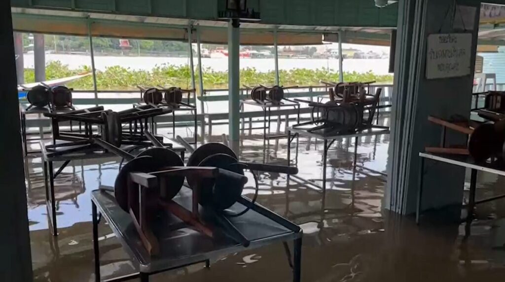 6 ต.ค.- น้ำเจ้าพระยาล้นข้ามถนนเข้าท่วมบ้านกว่า 30 หลังคาเรือน ต.ชีน้ำร้าย อ.อินทร์บุรี จ.สิงห์บุรี ส่วนชุมชุนริมท่าน้ำปากเกร็ด เริ่มกระทบ