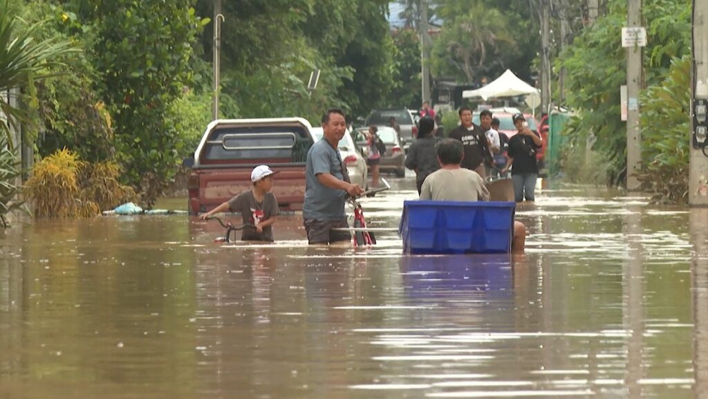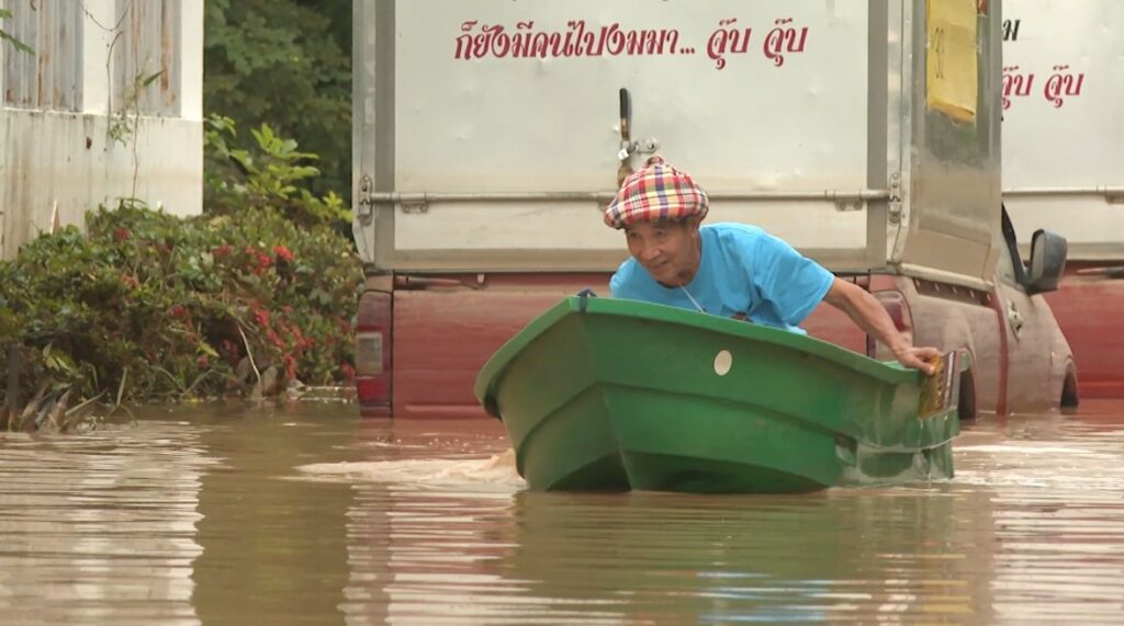 เชียงใหม่ 7 ต.ค. – น้ำท่วมเมืองเชียงใหม่ ที่ลดระดับลงได้ไหลหลากท่วมพื้นที่ท้ายน้ำอย่าง อ.สารภี หลายชุมชนถูกน้ำท่วมสูงกว่า 1 เมตร